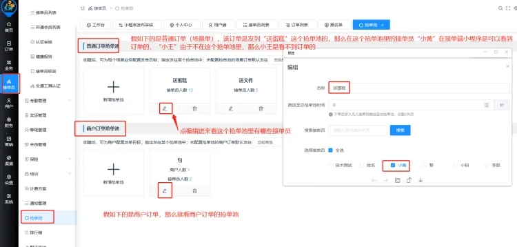 5.后台抢单池里设置了默认发往后台调度