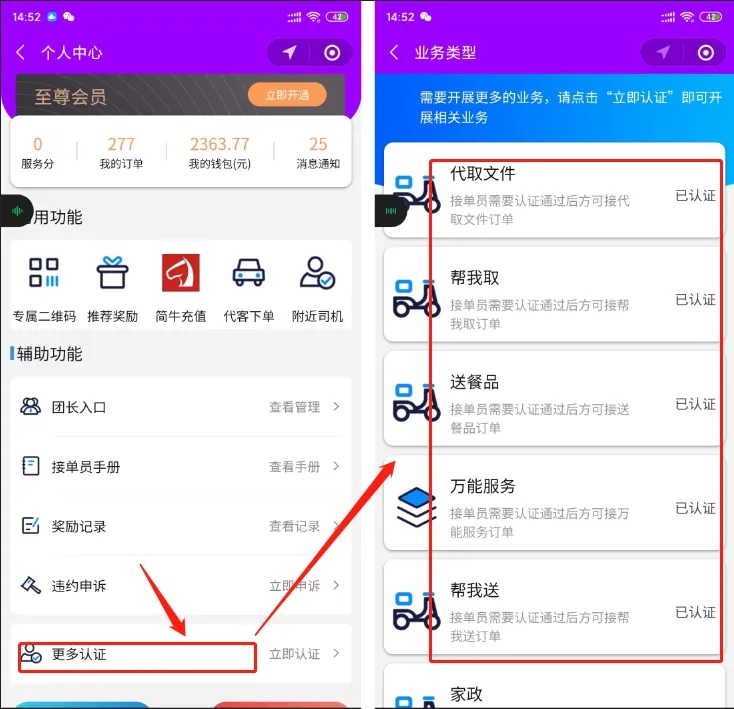 比如接单员认证的场景是帮我送,在下单端下了个帮我买的订单,那么接单员是不会收到订单提醒的(看不到订单),除非他也认证了帮我买这个业务场景