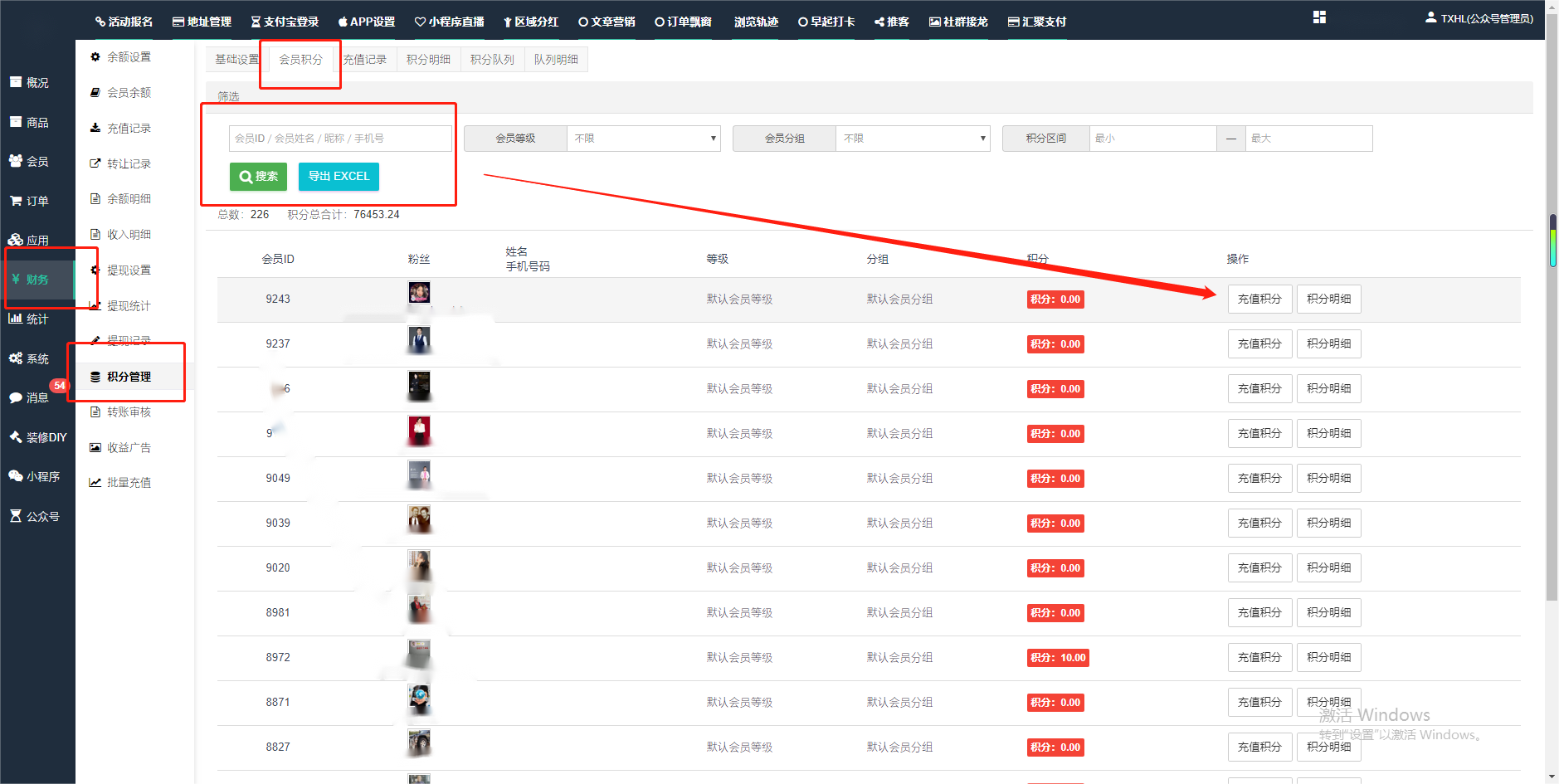 目录 搜索 展开 一、前期准备资料二、数字乡村码-上线操作指南1、服务号的申请流程及认证2、申请小程序流程3、开放平台绑定小程序和公众号三、数字乡村码-系统操作数字乡村码系统管理-概况数字乡村码-商品管理1、发布商品2、商品列表3、商品表单4、商品分类5、品牌管理6、配送模板7、评论管理8、优惠券管理9、商品标签10、退货地址设置11、满额优惠12、批量操作13、配送方式14、基础设置15、商品隐藏四、数字乡村码-会员管理1、全部会员2、会员等级3、会员分组4、资格申请5、会员设置6、推广中心设置7、会员邀请码8、会员关系链修改关系链修改记录9、会员合并记录10、账号注销管理11、会员设置中心五、数字乡村码-订单管理1、订单管理列表2、订单处理流程3、订单状态4、订单修改价格5、订单退款退货6、多包裹发货7、批量发货订单操作步骤8、催发货订单9、物流查询六、数字乡村码-财务管理1、余额设置2、会员余额3、充值记录4、转让记录5、余额明细6、收入明细7、提现设置8、提现统计9、积分管理10、转账审核11、收益广告12、批量充值七、数字乡村码-系统管理1、商城入口2、商城设置①、商城设置②、订单设置③、物流查询④、短信⑤、联系方式⑥、分类⑦、优惠券⑧、分享⑨、幻灯片⑩、广告位⑫、地图设置3、交易设置4、微信模板消息自定义消息模板(新版)自定义消息模板(旧版)小程序消息模板公众号模板消息变更公告5、语言设置6、权限管理7、多媒体管理八、数字乡村码-消息管理九、数字乡村码-应用管理十、数字乡村码系统-数据统计十一、数字乡村码-页面装修DIY1、模板管理2、店铺页面3、顶部导航4、底部导航5、DIY模板市场6、首屏广告7、基础设置8、装修DIY尺寸建议十二、供应商功能插件操作指南1、供应商2、门店-收银台门店申请和使用步骤门店管理①、门店-收银台 营销设置②、门店-收银台 分润设置门店分类门店申请门店审核门店商品门店商品订单收银台订单数据统计核销员基础设置默认设置门店装修3、微社区4、会务活动十三、营销插件操作指南活动报名提货卡新人奖微店问卷调查积分视频分享1、视频分享基础设置2、视频分享发现管理3、视频分享分类管理4、视频分享评论管理5、视频分享分红记录6、视频分享短视频中心每日红包幸运大抽奖签到优惠券二维码任务奖励优惠劵文章音频文章付费文章限时购新海报拓客卡操作流程积分活动素材中心视频红包十四、入驻门店应用类1、门店预约2、附近商品3、门店定位设置4、门店控制5、门店满额包邮6、门店满额减7、导入商品8、门店搜索9、门店股东10、核销券11、多门店核销1、商城后台设置2、前端功能演示十五、常见问题1、后台登录密码修改流程2、会员-余额,积分,后台如何进行充值与扣除3、如何修改上下级关系4、一种万能的获取商城小程序路径的方法 暂无相关搜索结果! 阅读次数:2162 本文档使用 模王系统 发布 2、会员-余额,积分,后台如何进行充值与扣除 会员-余额,积分,后台如何进行充值与扣除一.如何进行余额充值-扣除1.财务-会员余额-搜索会员昵称-右边点击充值余额2.扣除余额,只需要在充值金额前加上 - 号;比如充值-100,等于扣除100余额二,如何手动充值积分-扣除积分(充值与扣除逻辑跟余额是一样的)文档更新时间: 2024-01-05 14:28 作者:链上旅行