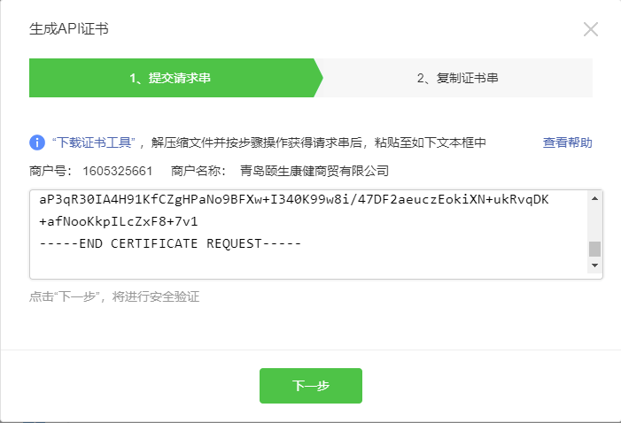 复制证书请求串至商户平台