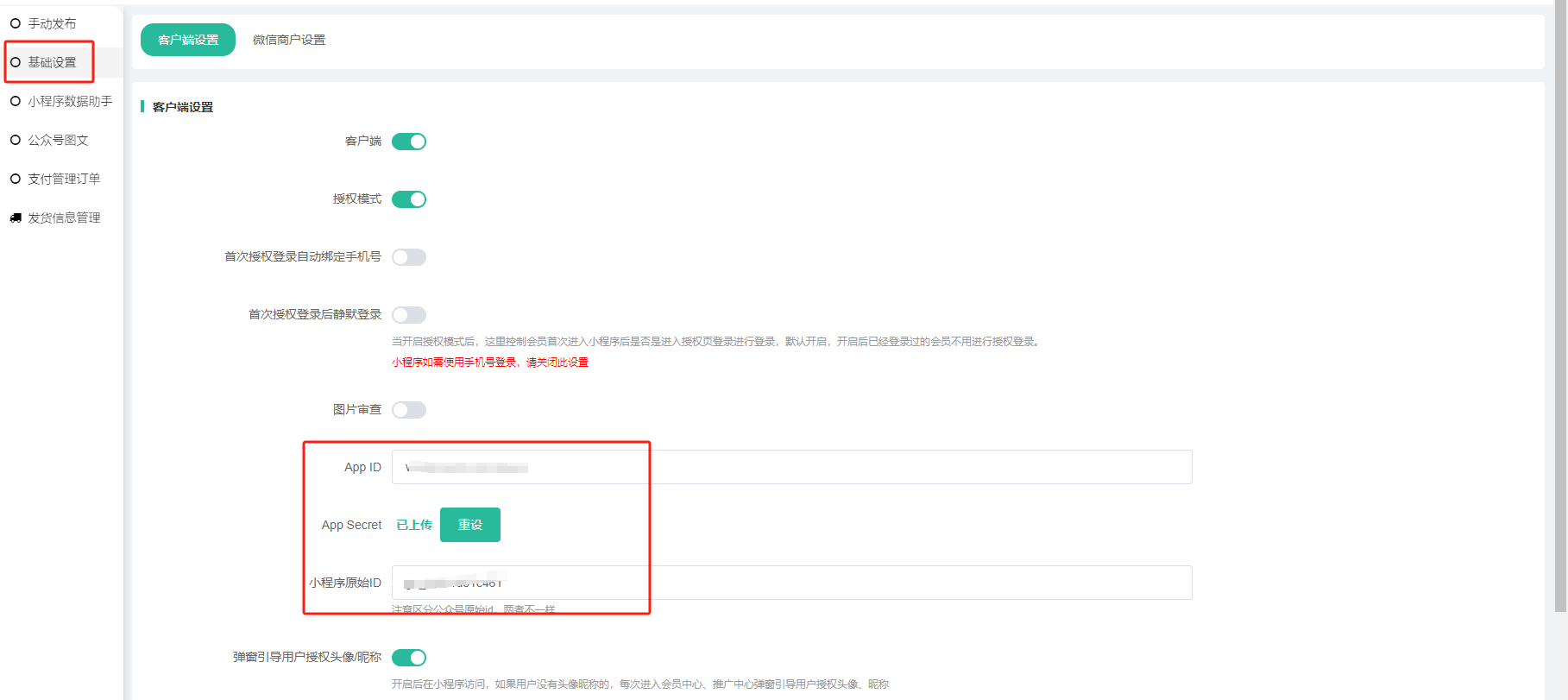 3:登录系统后台-应用-小程序-基础设置,进行设置。