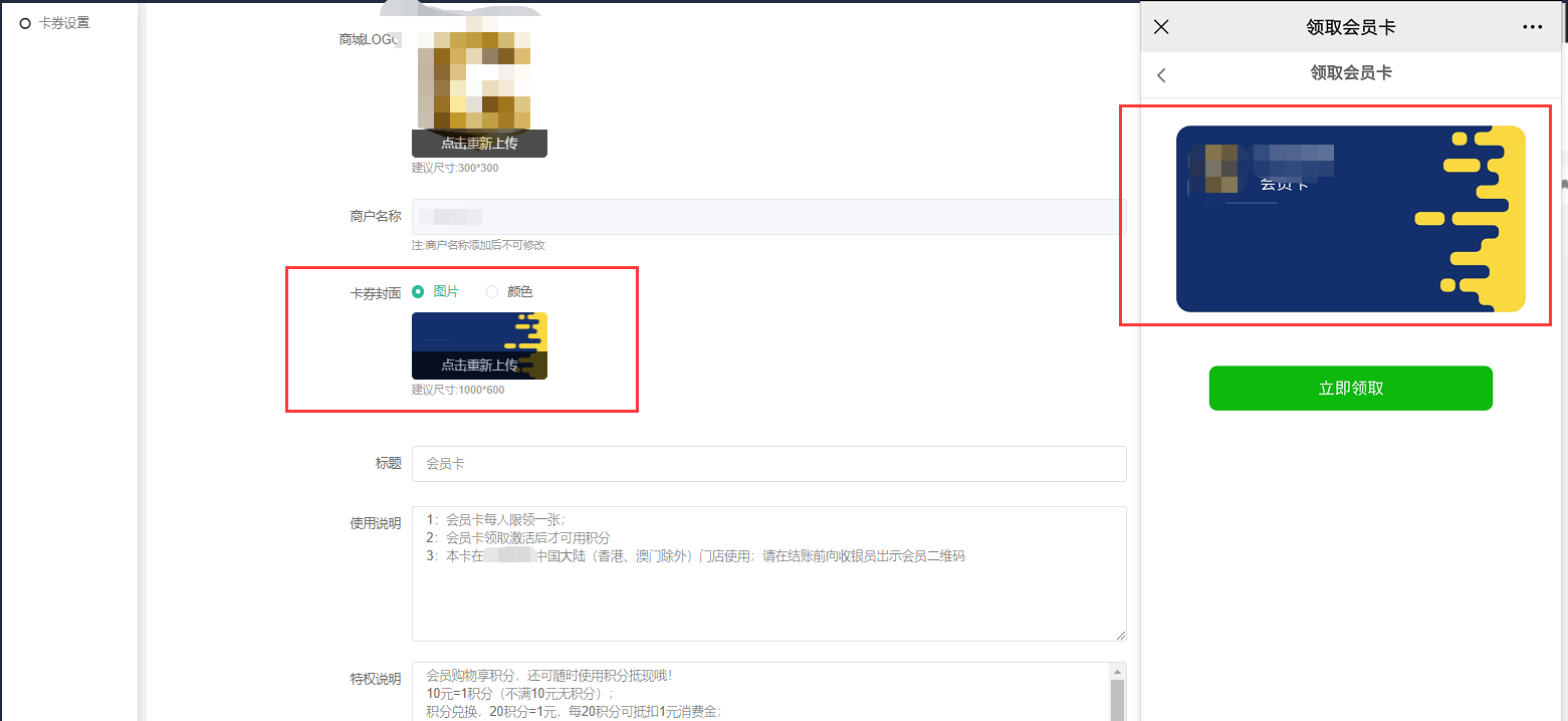 4、商城logo:会员卡的logo,建议尺寸300x300,或正方型图片