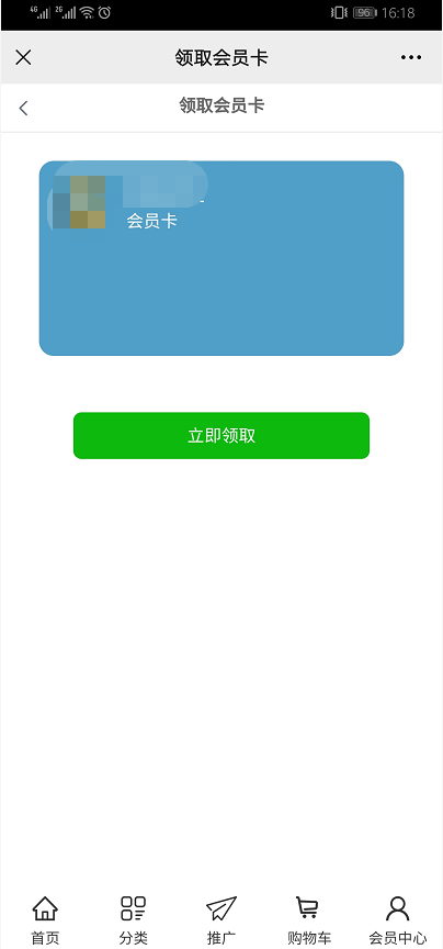 注意:点击会员ID可进入卡号页面,是没有核销码显示的,是正常的,如下图,这微信卡券仅作为引导关注公众号、进入商城的功能。