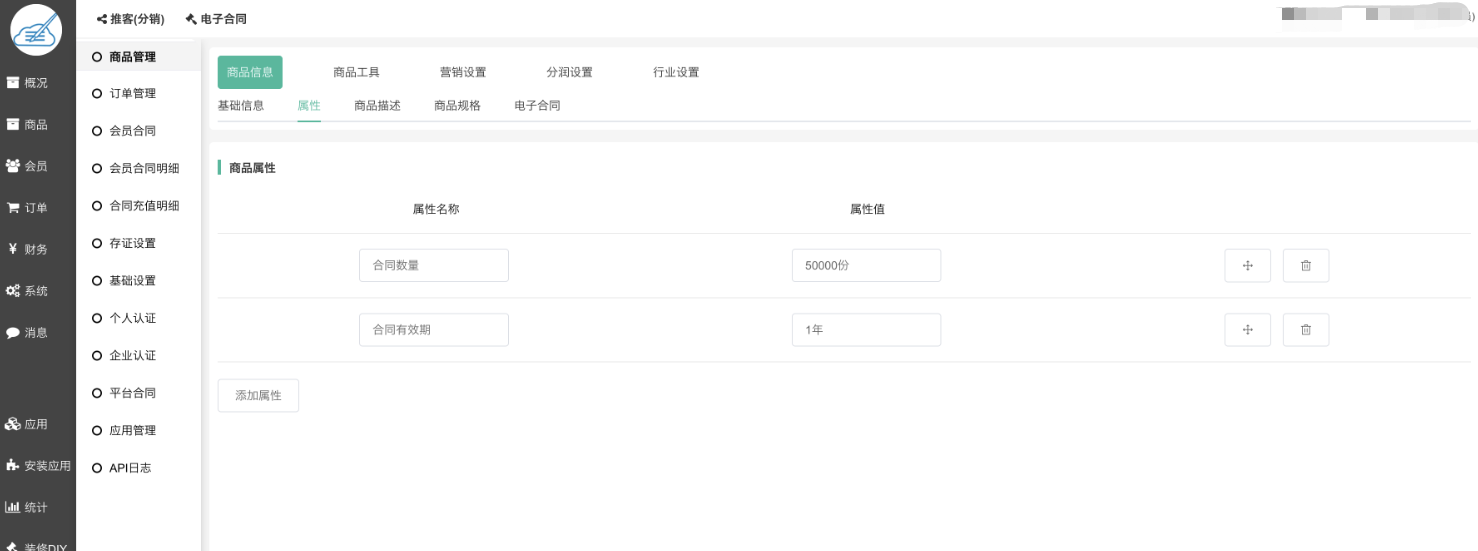 建议在商品属性中增加合同份数、有效期属性,避免纠纷